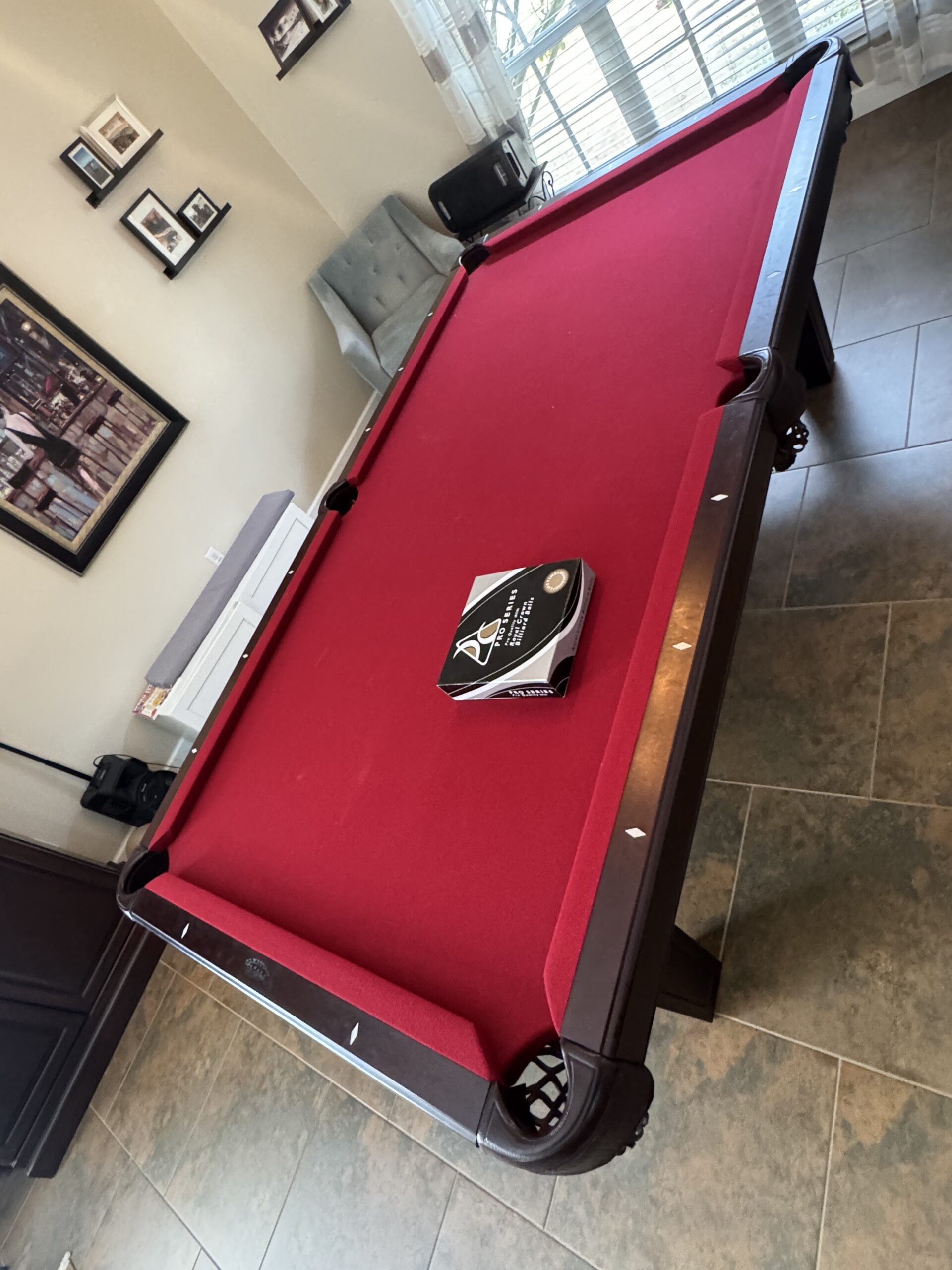 Caring for Your Pool Table: To keep your pool table in top condition, brush the felt regularly to remove chalk and dust, and cover the table when not in use to protect it from sunlight and spills. Keep drinks and food away from the playing surface, and use the included brush and accessories for proper upkeep. With a little routine care, your table will stay looking great and playing smooth for years.