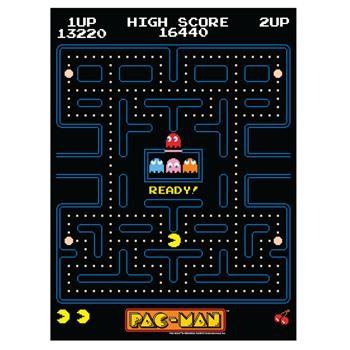 Features Pac-Man and the ghosts — Clyde, Blinky, Pinky, and Inky.